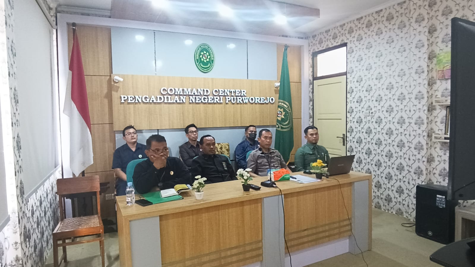 Sekretaris PN Purworejo Bapak Ervan Rulidartomo, S.H., dan Kasubbag Kasubag Kepegwaiwan dan Ortala serta Plt. Kasubag Umum dan Keuangan mengikuti Sosialisasi Peraturan Menteri Keuangan Nomor 210/PMK.05/2022 dan Jabatan Fungsional Keuangan secara daring di Media Center Pengadilan Negeri Purworejo pada Kamis (9/3/2023).