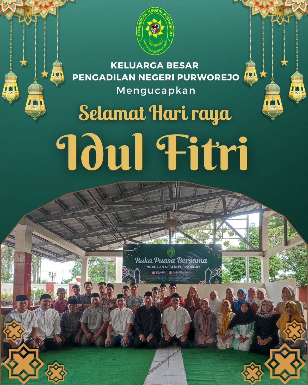 Keluarga Besar Pengadilan Negeri Purworejo mengucapkan Selamat memperingati Hari Raya Idul Fitri 1447H. Mohon Maaf lahir dan Batin. Semoga hari kemenangan ini membawa kedamaian, kebahagiaan, dan keberkahan bagi kita semua.