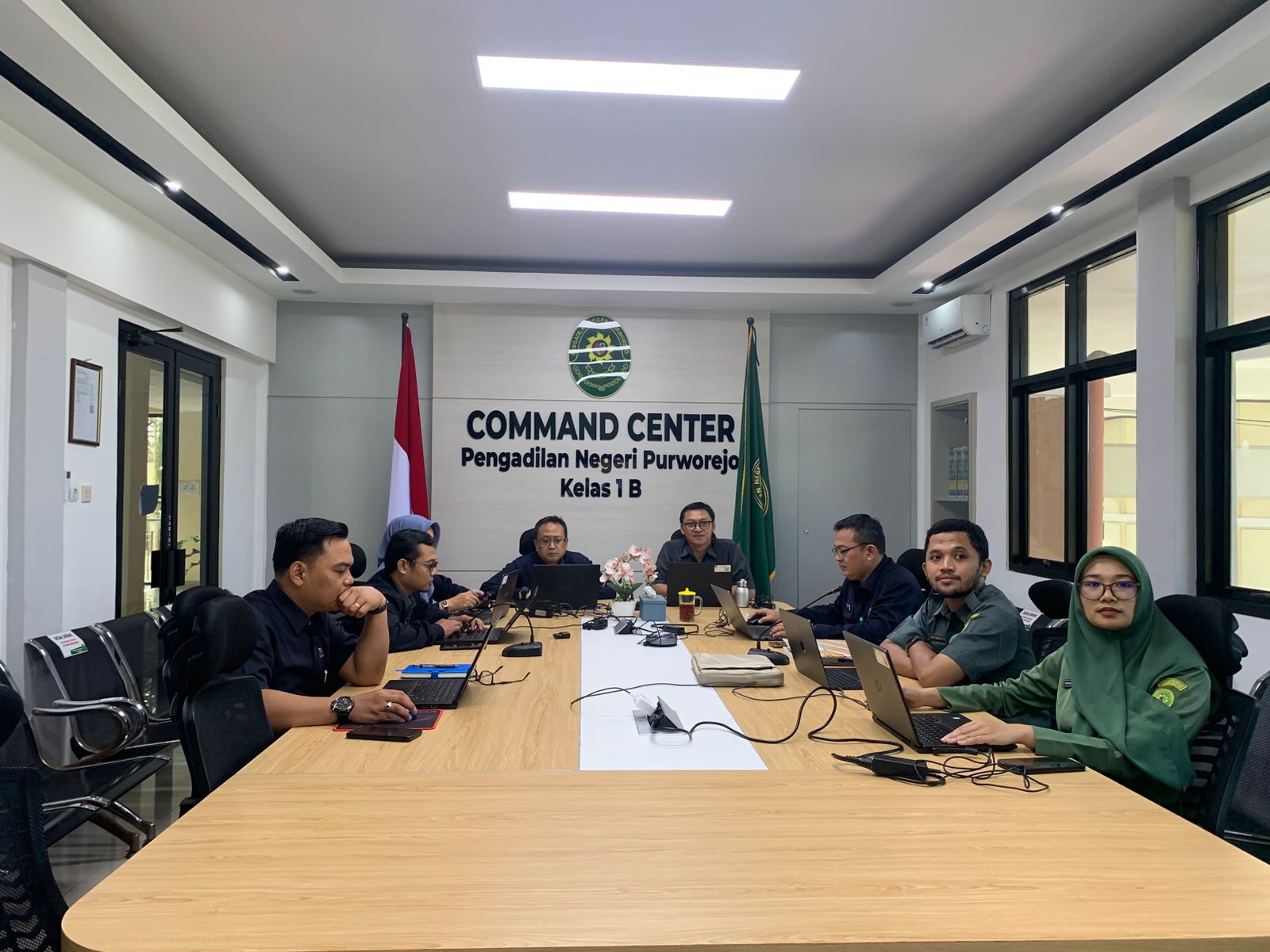 Purworejo - Selasa, 14 Oktober 2025. Bertempat di Ruang Command Center Pengadilan Negeri Purworejo mengikuti Sosialisasi dan Implementasi Sistem Akuntabilitas Kinerja Instansi Pemerintah (SAKIP) di Lingkungan Peradilan Umum secara daring bertempat di Command Center Pengadilan Negeri Purworejo.