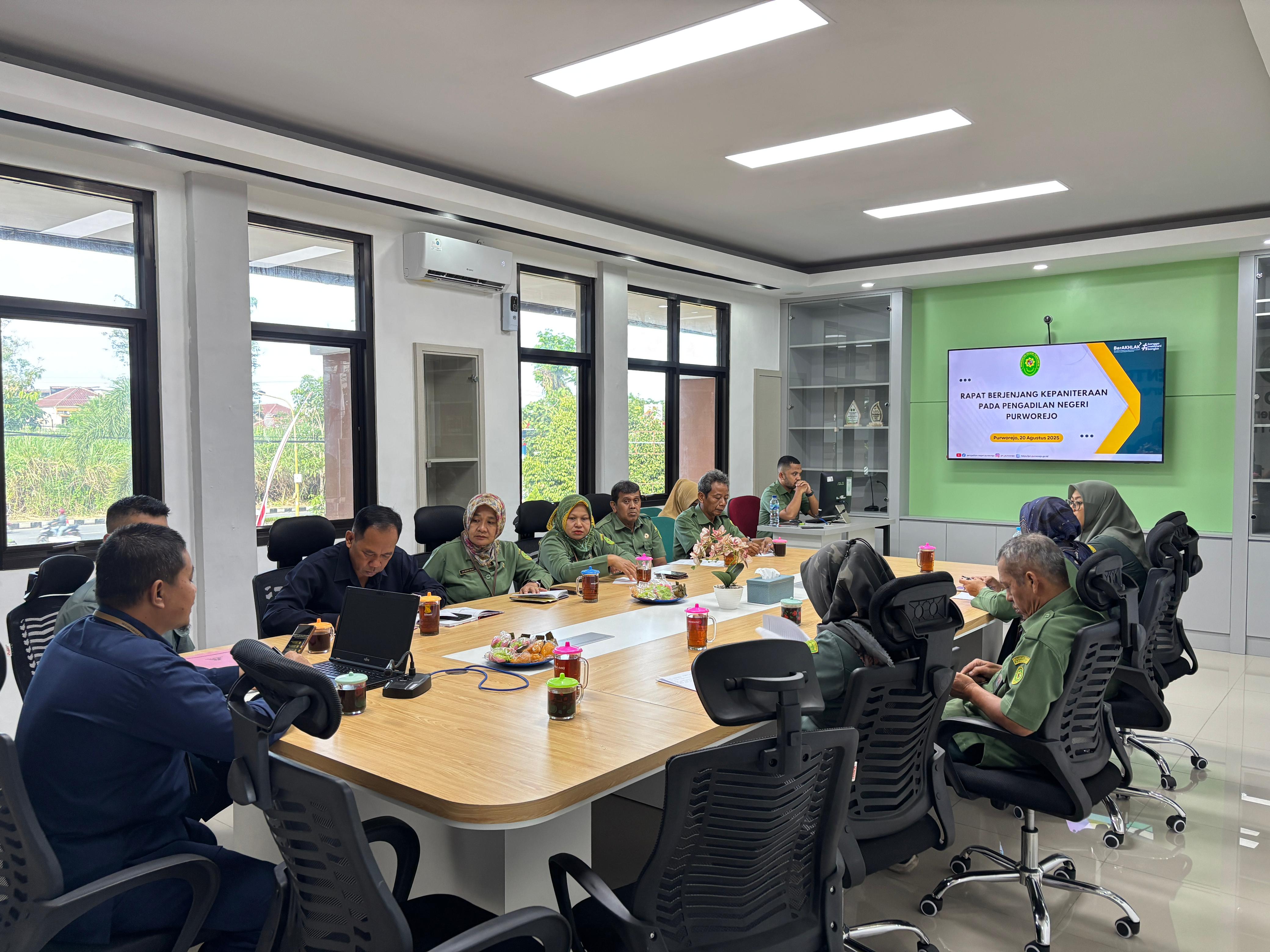 Purworejo - Kamis, 21 Agustus 2025. Bertempat di Ruang Sidang Utama Pengadilan Negeri Purworejo telah dilaksanakan acara Rapat Evaluasi Kinerja Periode Bulan Juni 2025 Pengadilan Negeri Purworejo yang dipimpin oleh Ketua Pengadilan Negeri Purworejo Bapak R. Heddy Bellyandi, S.H., M.H. didampingi Wakil Ketua Pengadilan Negeri Purworejo Bapak Hernawan, S.H., M.H. dan dihadiri oleh seluruh keluarga besar Pengadilan Negeri Purworejo. Rapat bulanan ini bertujuan untuk memonitor dan mengevaluasi kinerja organisasi selama satu bulan.