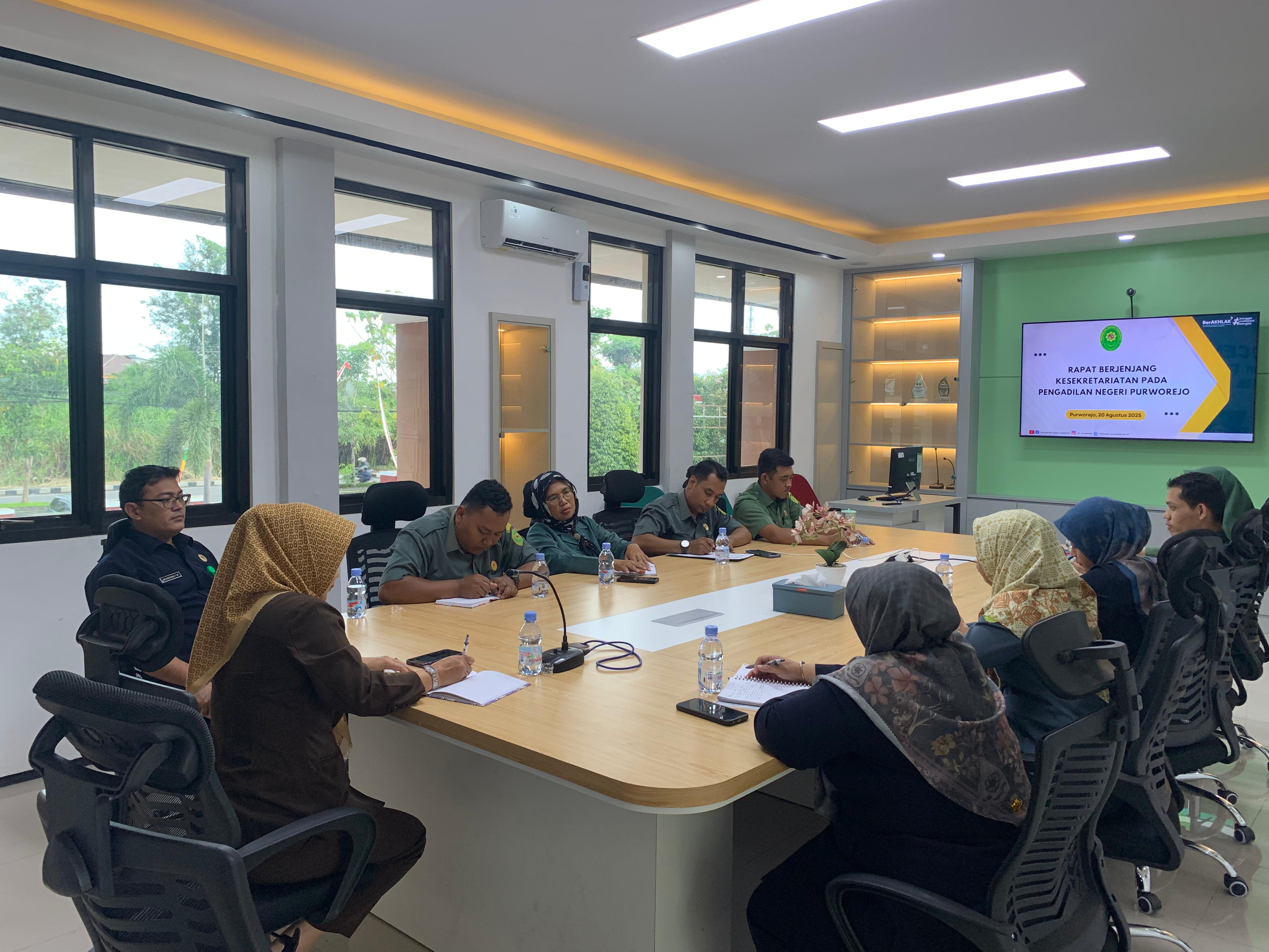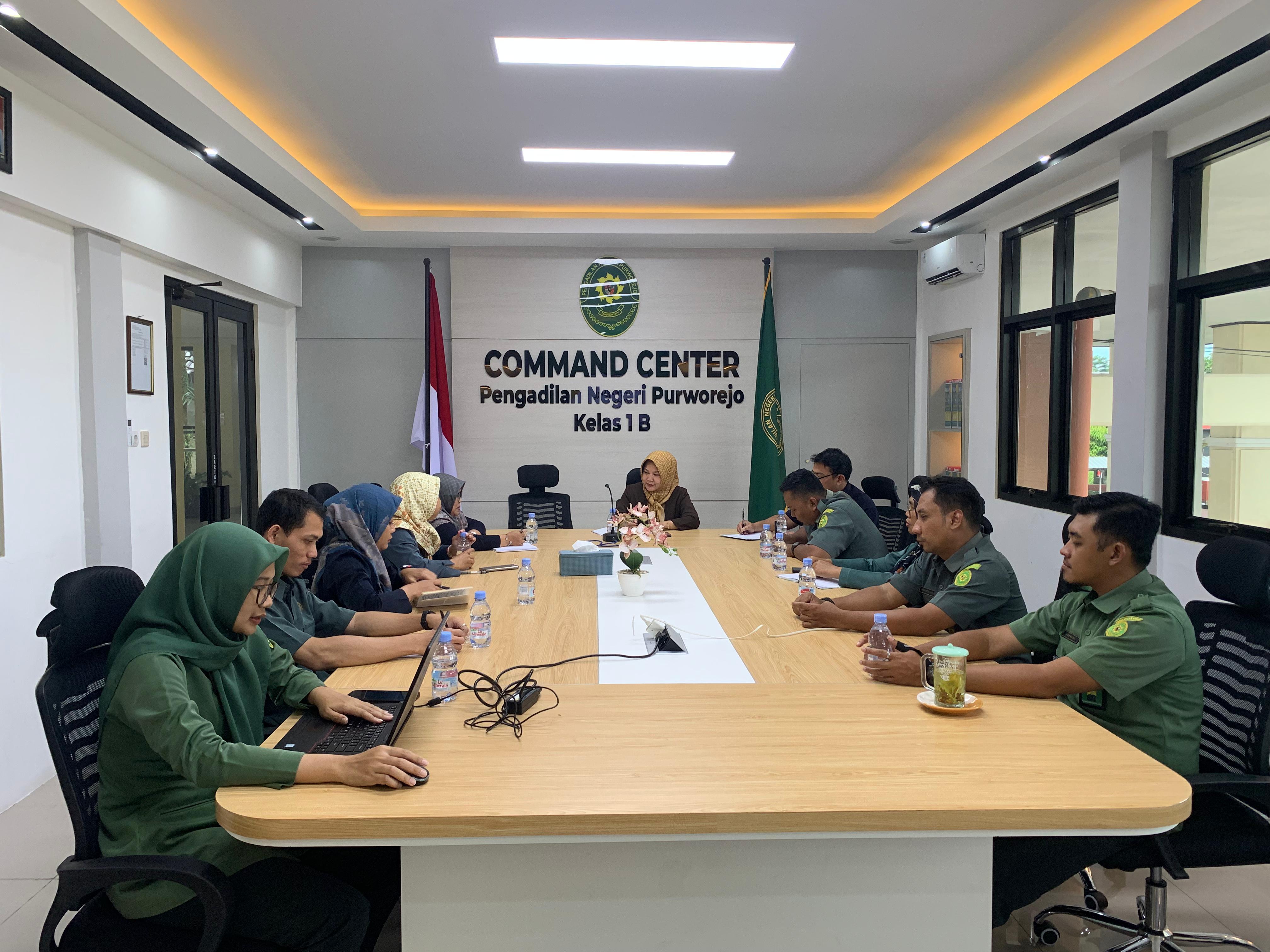 Purworejo - Rabu, 20 Agustus 2025. Bertempat di Ruang Command Center Pengadilan Negeri Purworejo dilaksanakan Rapat Kesekretariatan yang dipimpin oleh Sekretaris Pengadilan Negeri Purworejo Ibu Puspita Primavita, S.Kom. dan diikuti oleh seluruh Kepala Sub Bagian dan jajarannya.