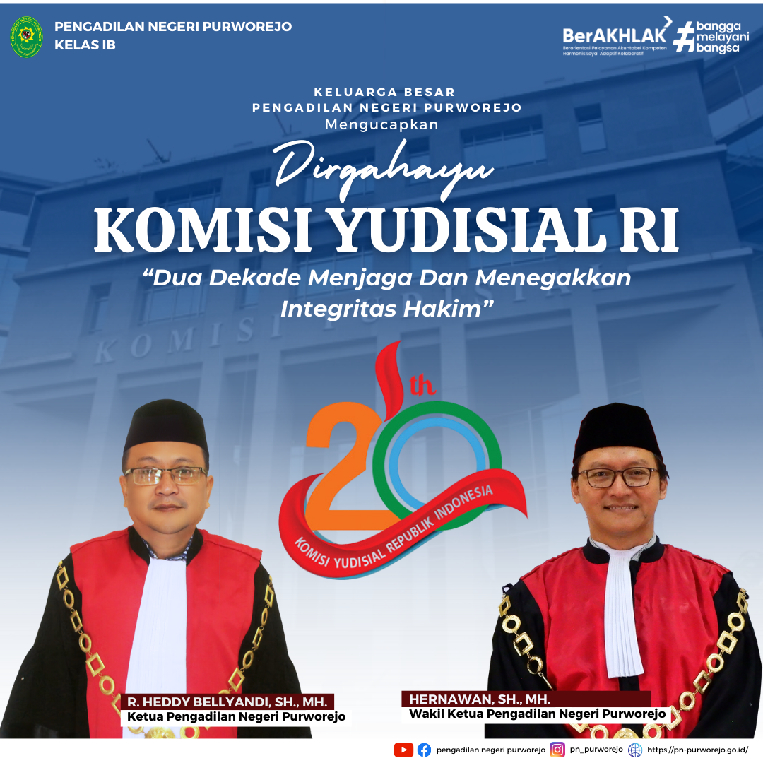 Keluarga Besar Pengadilan Negeri Purworejo mengucapkan Dirgahayu Komisi Yudisial RI "Dua Dekade Menjaga dan Menegakkan Integritas Hakim".