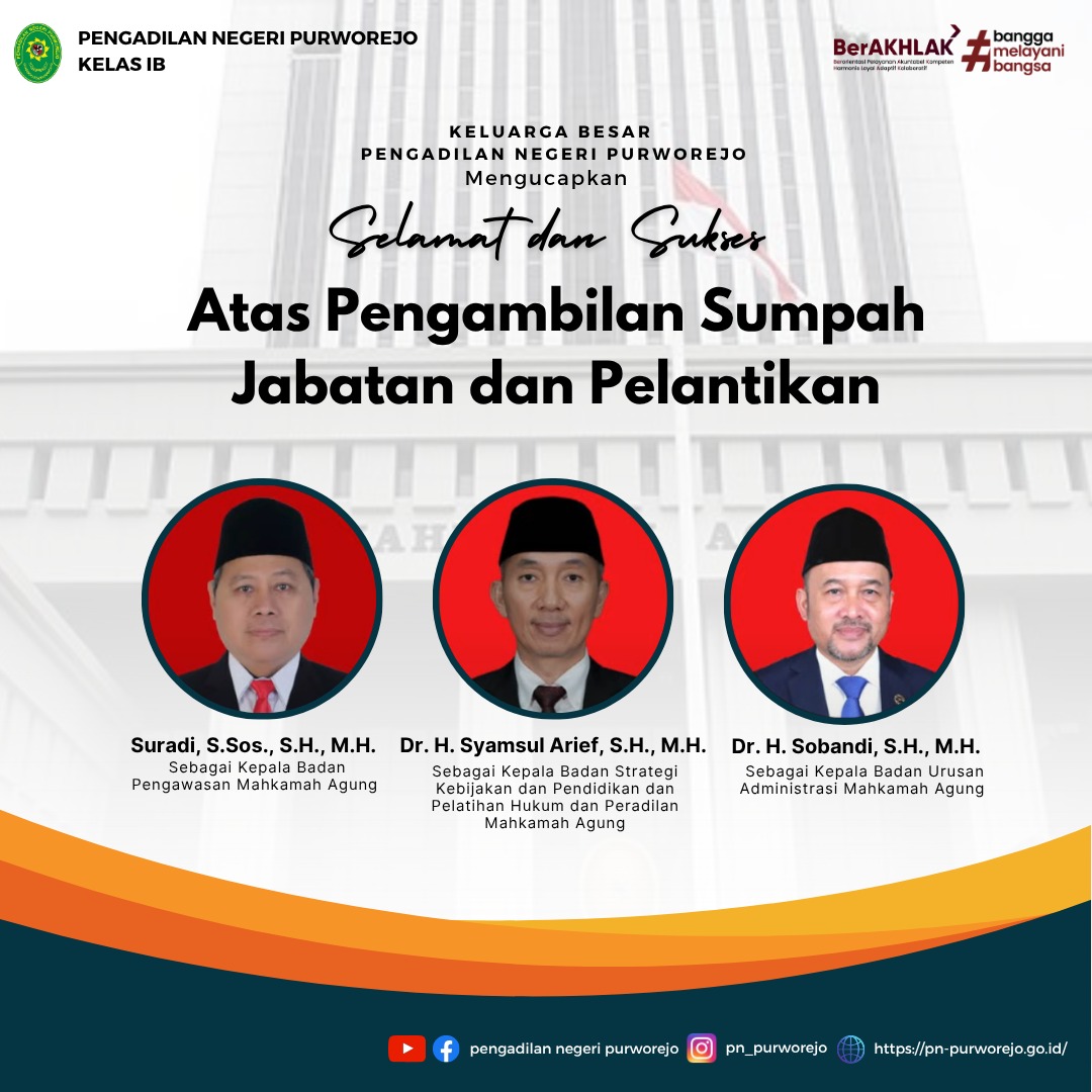 Keluarga Besar Pengadilan Negeri Purworejo mengucapkan Selamat dan Sukses Atas Pengambilan Sumpah Jabatan dan Pelantikan