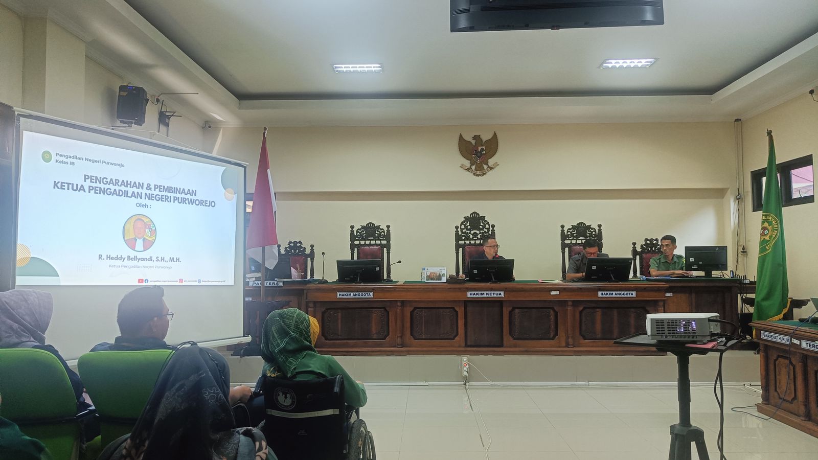 Purworejo - Selasa, 24 Juni 2025. Bertempat di Ruang Sidang Utama Pengadilan Negeri Purworejo telah dilaksanakan acara Rapat Evaluasi Kinerja Periode Bulan Juni 2025 Pengadilan Negeri Purworejo yang dipimpin oleh Ketua Pengadilan Negeri Purworejo Bapak R. Heddy Bellyandi, S.H., M.H. didampingi Wakil Ketua Pengadilan Negeri Purworejo Bapak Hernawan, S.H., M.H. dan dihadiri oleh seluruh keluarga besar Pengadilan Negeri Purworejo. Rapat bulanan ini bertujuan untuk memonitor dan mengevaluasi kinerja organisasi selama satu bulan.