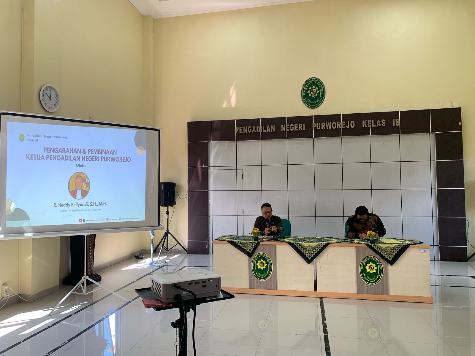Purworejo - Kamis, 24 April 2025. Bertempat di aula Pengadilan Negeri Purworejo telah dilaksanakan acara Rapat Monitoring Dan Evaluasi Kinerja, ZI dan AMPUH Periode Bulan April Pengadilan Negeri Purworejo yang dipimpin oleh Ketua Pengadilan Negeri Purworejo Bapak R. Heddy Bellyandi, S.H., M.H. didampingi Wakil Ketua Pengadilan Negeri Purworejo Bapak Hernawan, S.H., M.H. dan dihadiri oleh seluruh keluarga besar Pengadilan Negeri Purworejo. Rapat bulanan ini bertujuan untuk memonitor dan mengevaluasi kinerja organisasi selama satu bulan.