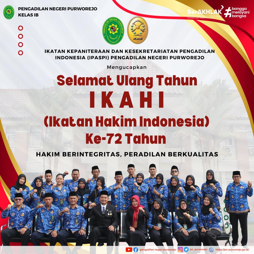 Selamat Ulang Tahun IKAHI (Ikatan Hakim Indonesia) ke - 72.