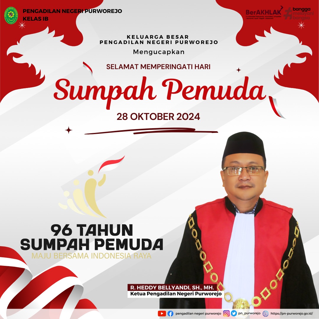 Ikatan Kepaniteraan dan Kesekretariatan Pengadilan Indonesia (IPASPI) Pengadilan Negeri Purworejo mengucapkan Selamat Ulang Tahun IPASPI ke -30 Tahun 2024 (28 Oktober 1994 s/d 28 Oktober 2024).