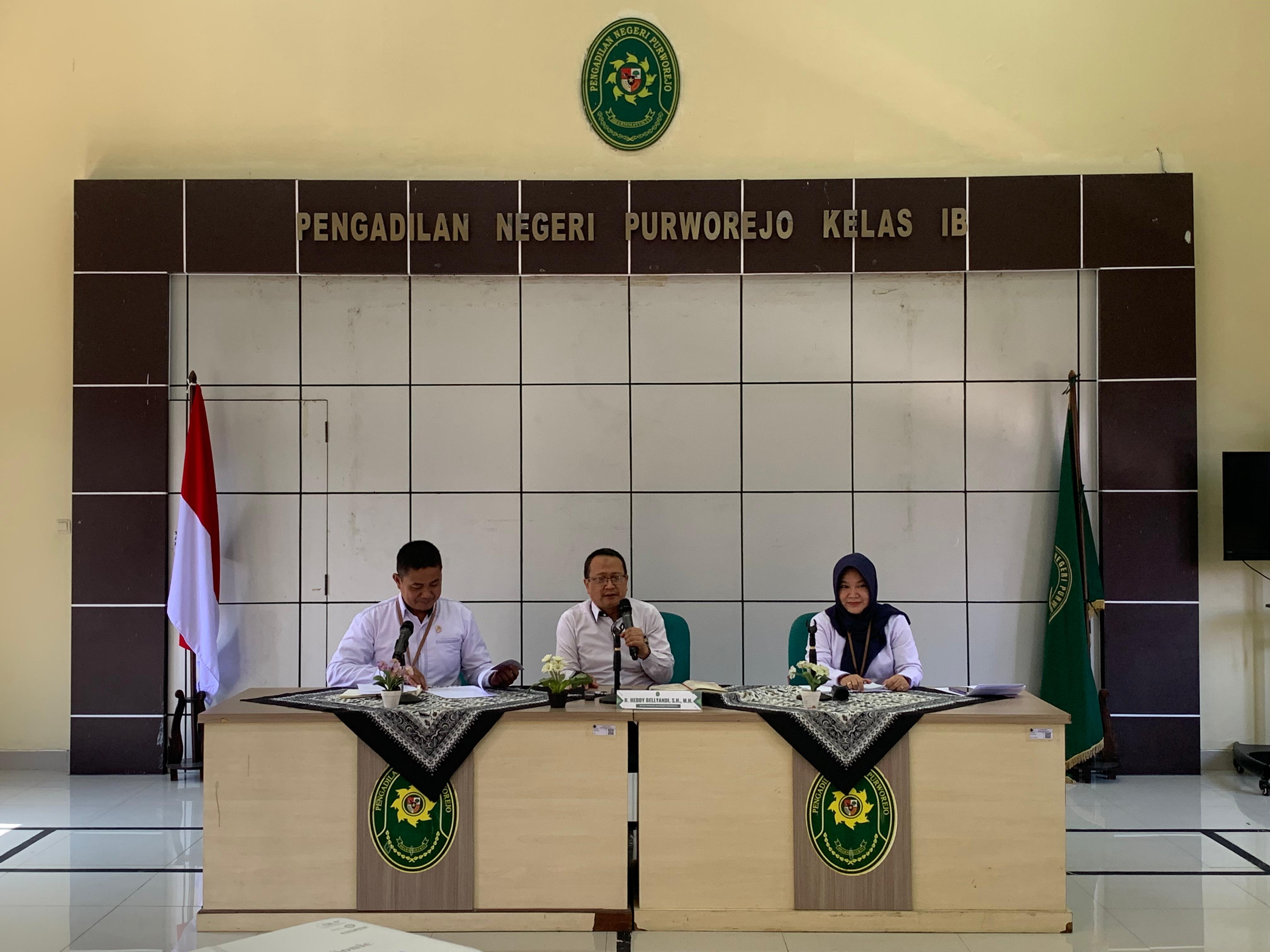 Purworejo – Senin, 21 Oktober 2024. Bertempat di aula Pengadilan Negeri Purworejo telah dilaksanakan acara Rapat Monitoring Dan Evaluasi Kinerja Bulanan Pengadilan Negeri Purworejo yang dipimpin oleh Ketua Pengadilan Negeri Purworejo Bapak R. Heddy Bellyandi, S.H., M.H. dan dihadiri oleh seluruh keluarga besar Pengadilan Negeri Purworejo. Rapat bulanan ini bertujuan untuk memonitor dan mengevaluasi kinerja organisasi selama satu bulan.