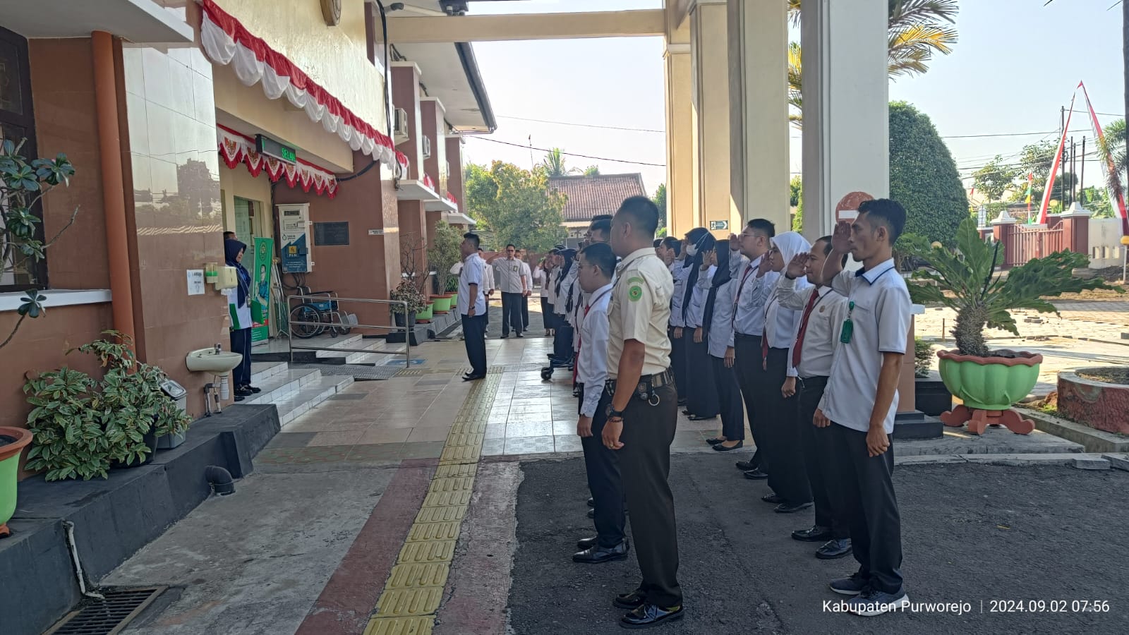 Purworejo – Senin, 2 September 2024. Kegiatan apel pagi dipimpin oleh Ketua Pengadilan Negeri Purworejo Bapak R. Heddy Bellyandi, S.H., M.H. dan diikuti oleh seluruh Aparatur Sipil Negara serta para PPNPN Pengadilan Negeri Purworejo.