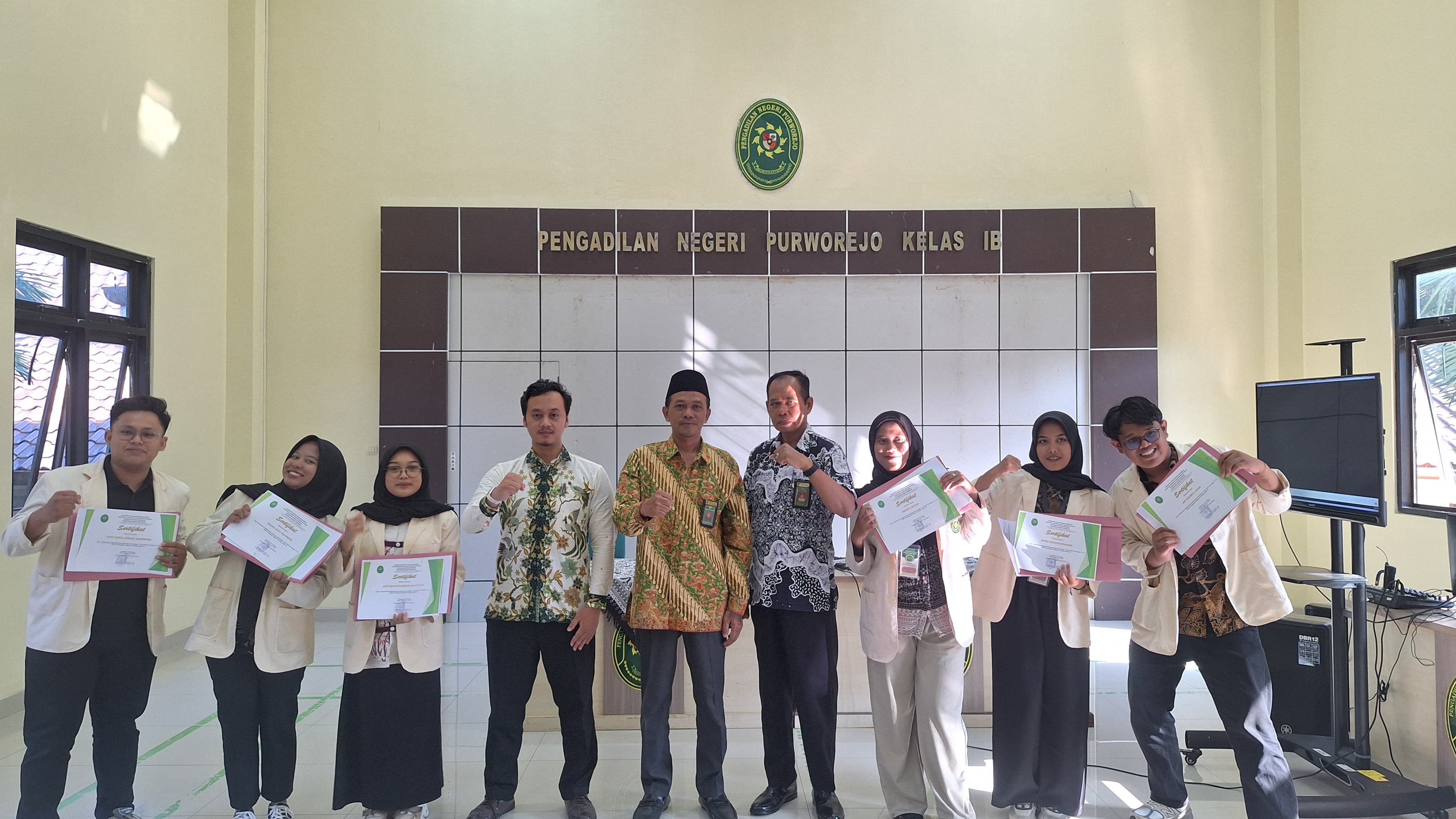 Purworejo – Jumat, 12 Juli 2024. Pengadilan Negeri Purworejo mengadakan Pelepasan Mahasiswa Magang dari Universitas Muhammadiyah Purworejo (UMP) bertempat di Aula Pengadilan Negeri Purworejo yang dipimpin oleh Ketua Pengadilan Negeri Purworejo Bapak Purnomo Hadiyarto, S.H. didampingi Panitera Muda Hukum Pengadilan Negeri Purworejo Bapak Purnomo, S.H..