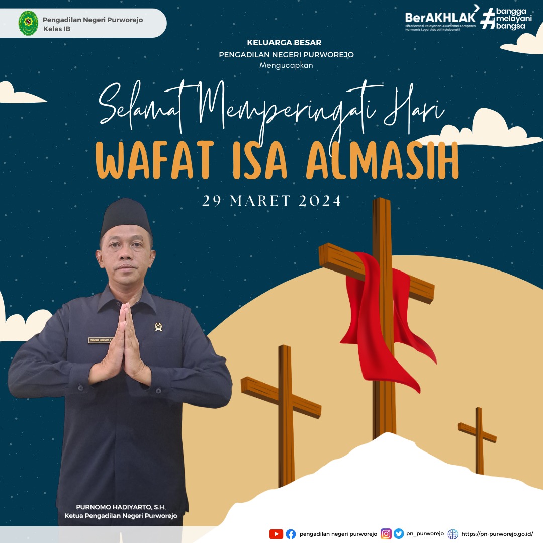Keluarga Besar Pengadilan Negeri Purworejo mengucapkan Selamat Memperingati Hari Wafat Isa Almasih.