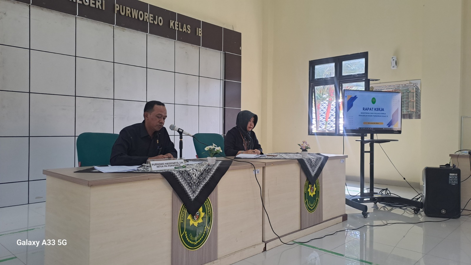 Purworejo - Selasa, 30 Januari 2024. Bertempat di aula Pengadilan Negeri Purworejo telah dilaksanakan acara rapat bulanan yang dipimpin oleh Ketua Pengadilan Negeri Purworejo Bapak Purnomo Hadiyarto, S.H. dihadiri oleh seluruh keluarga besar Pengadilan Negeri Purworejo. Rapat bulanan ini bertujuan untuk memonitor dan mengevaluasi kinerja organisasi selama satu bulan. Selain Rapat Kerja/Monitoring dan Evaluasi Kinerja Bulan Januari 2024 pada kesempatan kali ini juga dilaksanakan Opening Meeting Audit Internal APM Pengadilan Negeri Purworejo dan Penetapan Agen Perubahan Pengadilan Negeri Purworejo Tahun 2024.