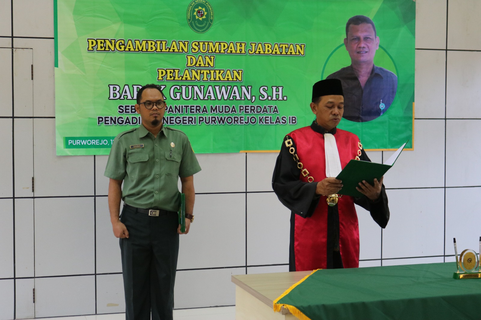 Pelantikan dan Pengambilan Sumpah Bapak Gunawan, S.H. Sebagai Panitera Muda Perdata Pengadilan Negeri Purworejo