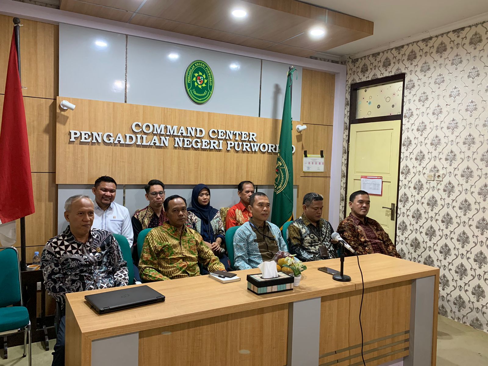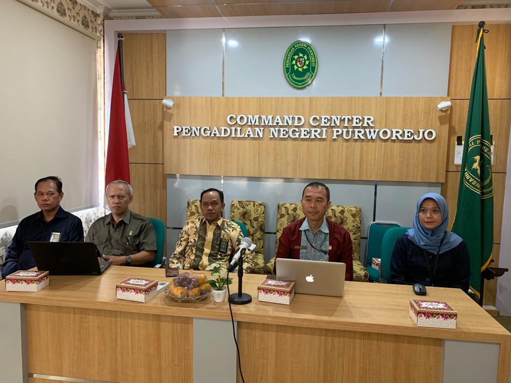 Purworejo – Selasa, 19 Desember 2023. Ketua Pengadilan Negeri Purworejo Bapak Purnomo Hardiyanto, S.H. dan Wakil Ketua Pengadilan Negeri Purworejo Bapak Santonius Tambunan, S.H., M.H. didampingi para Hakim Pengadilan Negeri Purworejo, Plh Panitera Pengadilan Negeri Purworejo dan Plh Sekretaris Pengadilan Negeri Purworejo mengikuti Pembinaan Teknis dan Administrasi Yudisial Oleh Ketua Mahkamah Agung RI Secara Virtual bertempat di Ruang Video Teleconference.