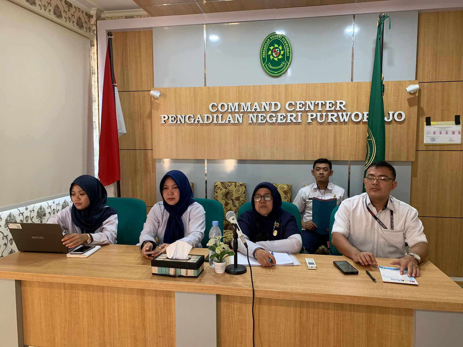 Purworejo – Senin, 11 Desember 2023. Sekretaris Pengadilan Negeri Purworejo Ibu Puspita Primavita, S.Kom didampingi Kepala Sub Bagian Organisasi Tata Laksana dan Kepegawaian, Kepala Sub Bagian Umum dan Keuangan, Kepala Sub Bagian PTIP dan Bendahara Pengeluaran menghadiri Kegiatan Sosialisasi Perubahan Nomenklatur Jabatan Fungsional dan Jabatan Pelaksana secara virtual bertempat di ruang Video Teleconference.