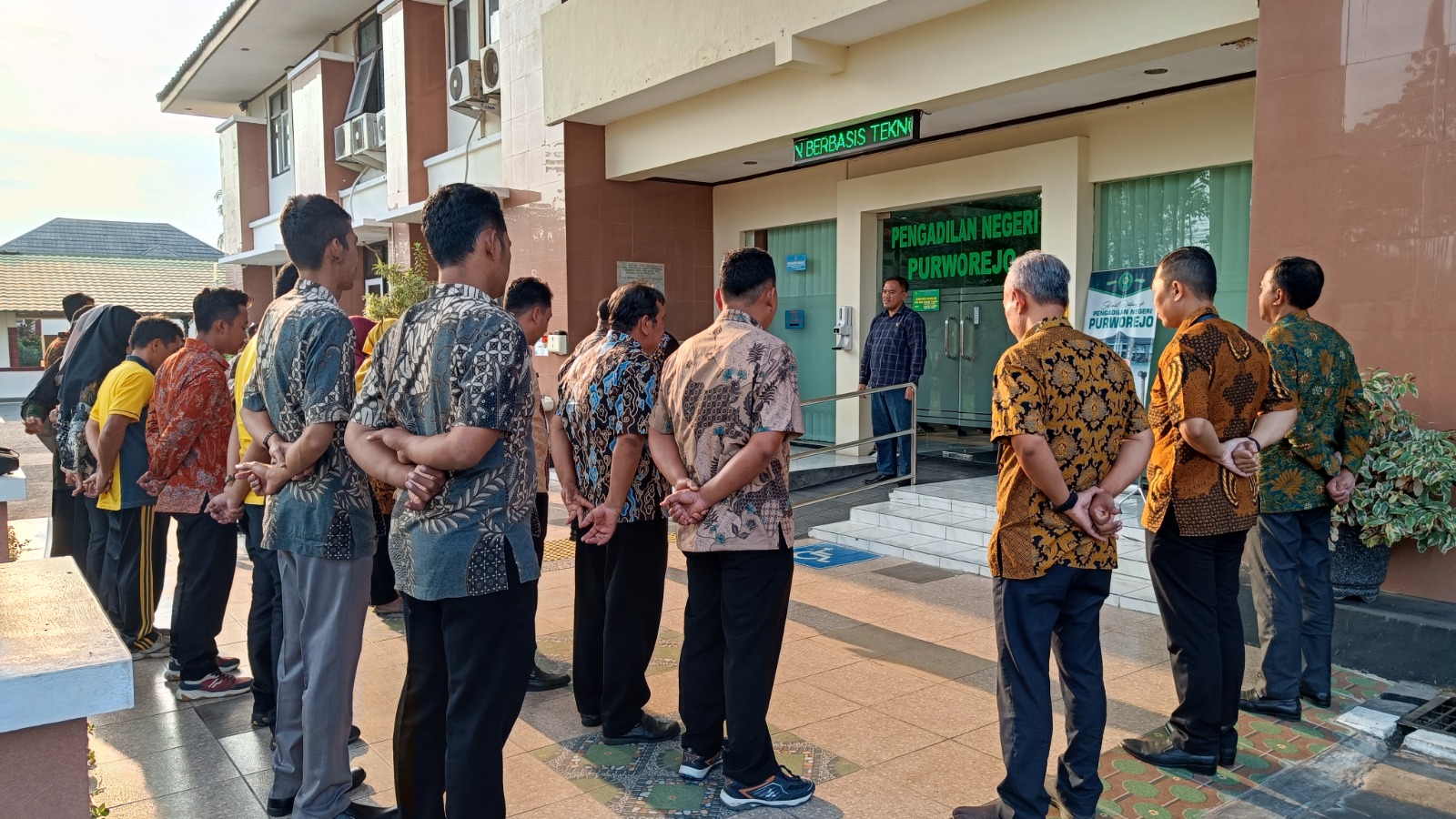 Purworejo – Jumat, 15 September 2023. Bertempat di halaman kantor Pengadilan Negeri Purworejo dilaksanakan apel sore yang dihadiri oleh seluruh Hakim, Pejabat Struktural, Pejabat Fungsional, Pelaksana dan PPNPN Pengadilan Negeri Purworejo tepat pukul 16.30 WIB.