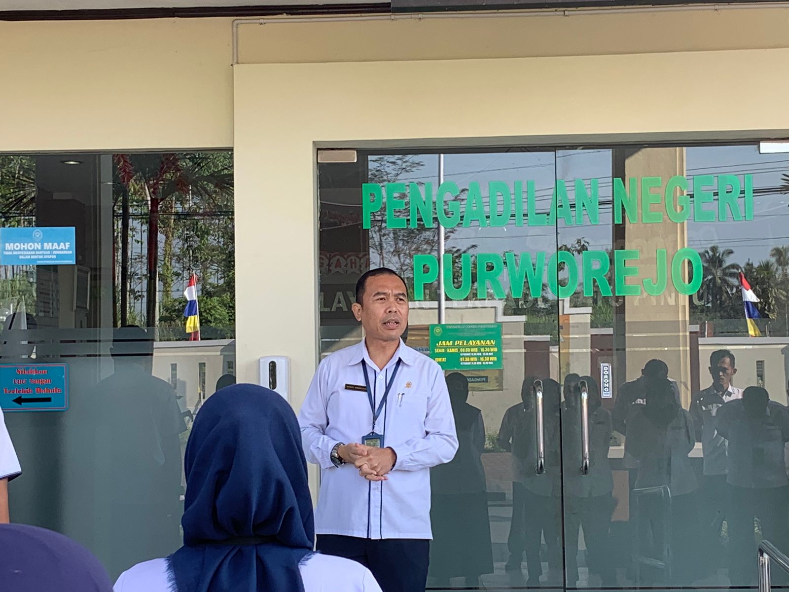 Purworejo – Senin, 4 September 2023. Pengadilan Negeri Purworejo melaksanakan apel pagi yang bertempat di halaman depan Kantor Pengadilan Negeri Purworejo. Adapun pembina pada apel pagi ini adalah Wakil Ketua Pengadilan Negeri Purworejo Bapak Santonius Tambunan S.H., M.H. serta diikuti oleh seluruh pegawai. Dan petugas pada apel pagi ini yaitu Ibu Hesti Srieyanti, S.H. sebagai pemimpin apel, Bapak Satria Panduwinata sebagai protokol, Bapak Permadi Satria Gumilang, A.Md sebagai pembaca doa dan Ibu Yuly Setyawati, A.Md sebagai pembaca yel-yel.