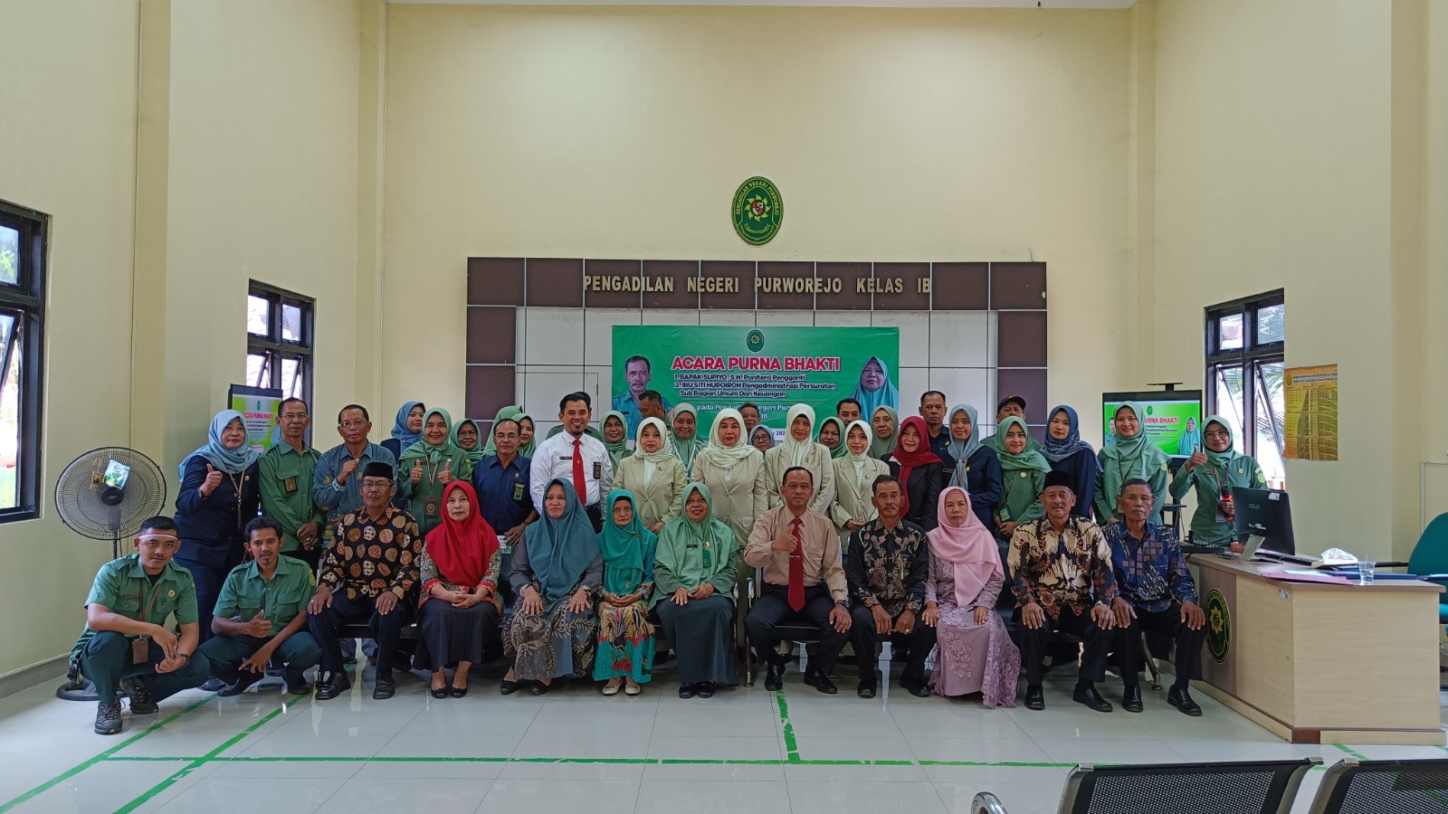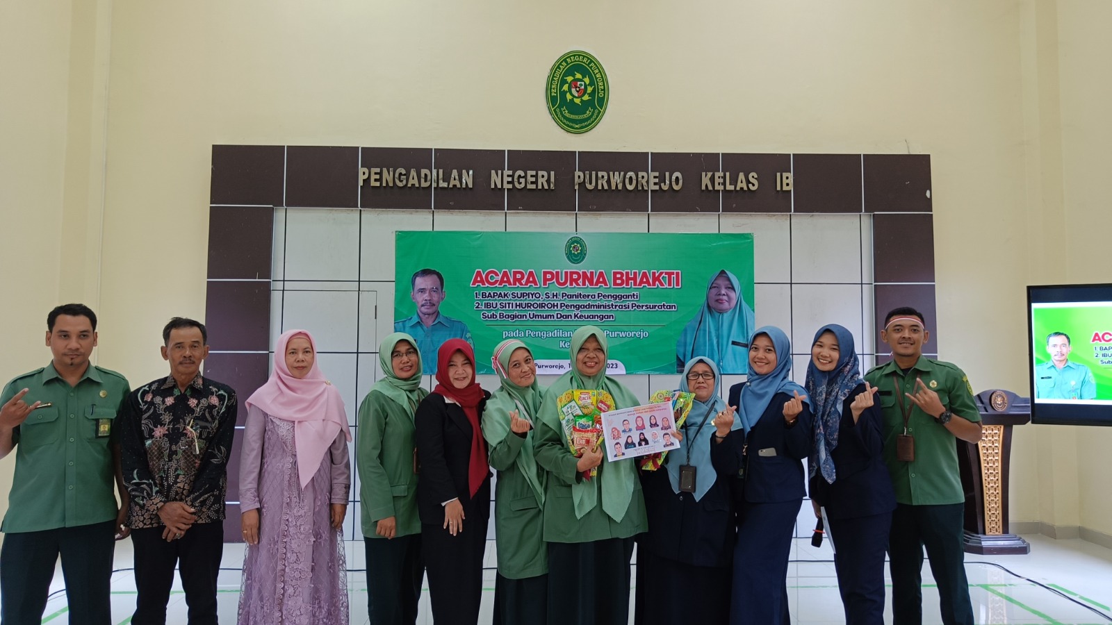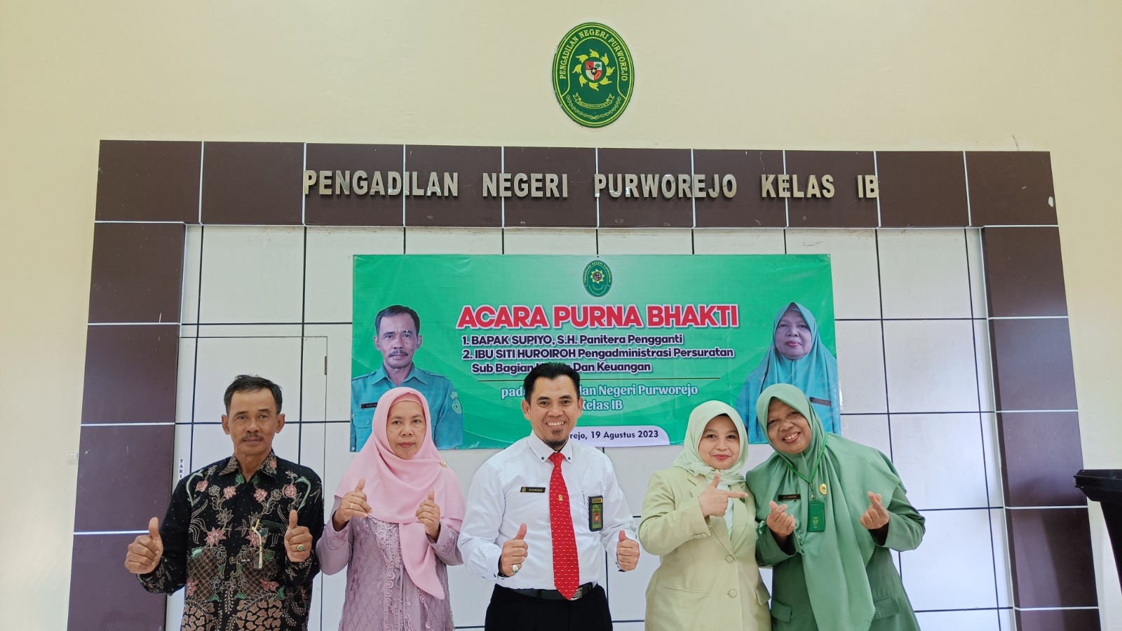 Purworejo - Sabtu, 19 Agustus 2023. Pengadilan Negeri Purworejo mengadakan Acara Purna Bhakti Bapak Supiyo, SH dan Ibu Siti Huroiroh dihadiri oleh seluruh Keluarga Besar Pengadilan Negeri Purworejo.