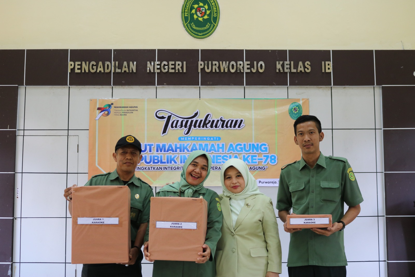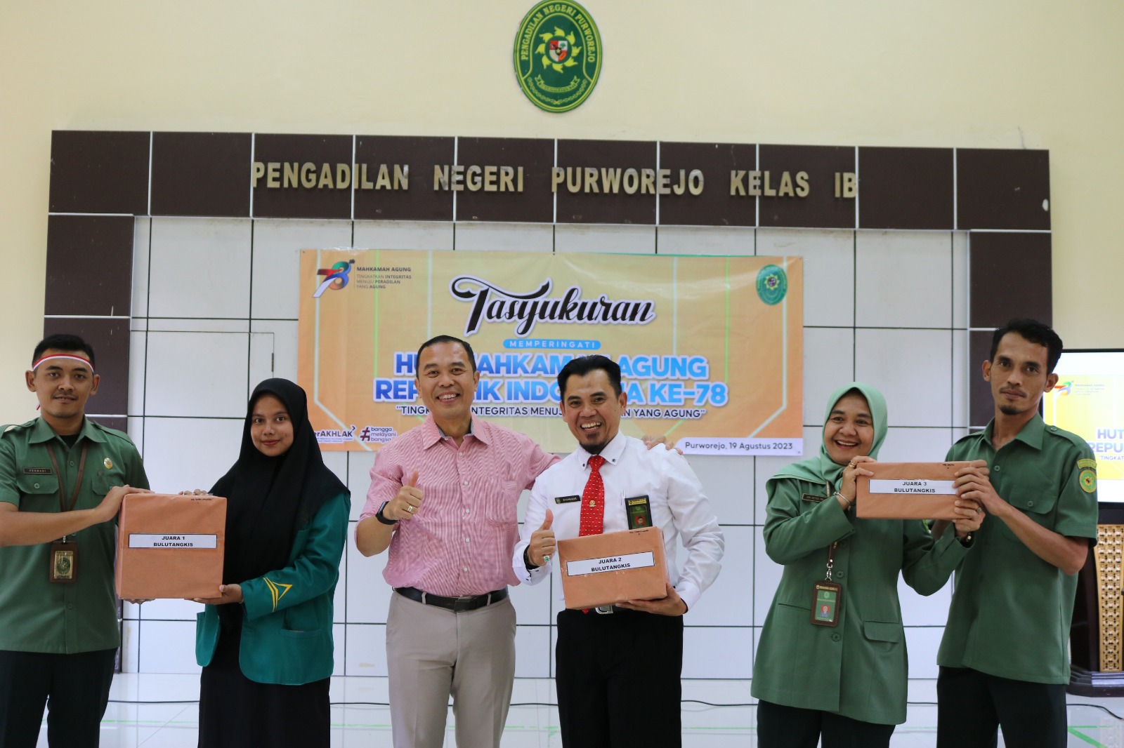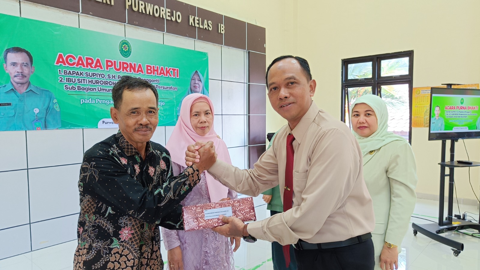 Purworejo - Sabtu, 19 Agustus 2023. Pengadilan Negeri Purworejo mengadakan Acara Purna Bhakti Bapak Supiyo, SH dan Ibu Siti Huroiroh dihadiri oleh seluruh Keluarga Besar Pengadilan Negeri Purworejo.
