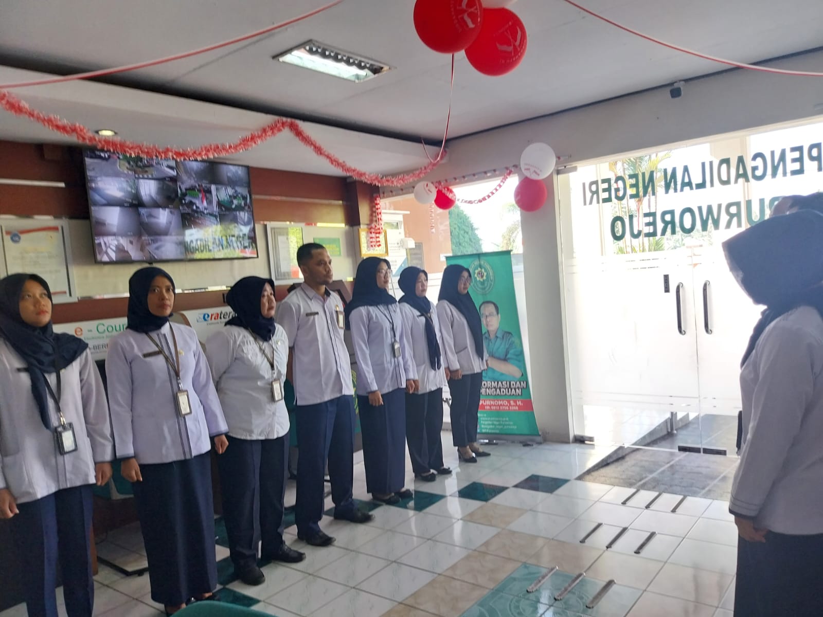 Purworejo – Senin, 14 Agustus 2023. Ketua Pengadilan Negeri Purworejo Bapak Purnomo Hadiyarto, S.H. didampingi oleh Panitera dan Sekretaris dan para pejabat struktural memberikan arahan kepada para petugas PTSP.