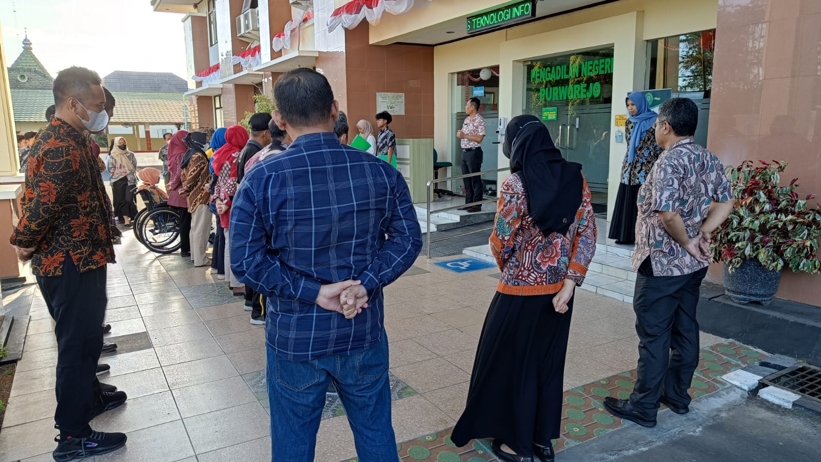 Purworejo – Senin, 14 Agustus 2023. Pengadilan Negeri Purworejo melaksanakan apel pagi yang bertempat di halaman depan Kantor Pengadilan Negeri Purworejo. Adapun pembina pada apel pagi ini adalah Hakim Pengadilan Negeri Purworejo Bapak Heri Kusmanto, S.H. serta diikuti oleh seluruh pegawai. Dan petugas pada apel pagi ini yaitu Bapak Achmad Nasichudin Imam Suprapto sebagai pemimpin apel, Bapak Ahmad Nafi'udin sebagai protokol, Bapak Ryan Aditya Wibowo, A.Md. sebagai pembaca doa dan Ibu Yuly Setyawati, A.Md sebagai pembaca yel-yel.