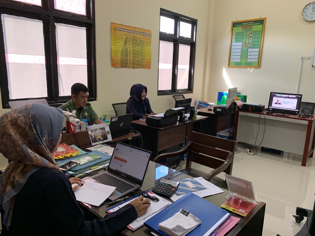 Purworejo – Rabu, 12 Juli 2023. Sekretaris, Kepala Sub Bagian Umum dan Keuangan dan Bendahara Pengadilan Negeri Purworejo Mengikuti Sosialisasi Pengajuan Tanda Tangan Elektronik Pada Aplikasi Sakti Pengelola Keuangan Secara Virtual.