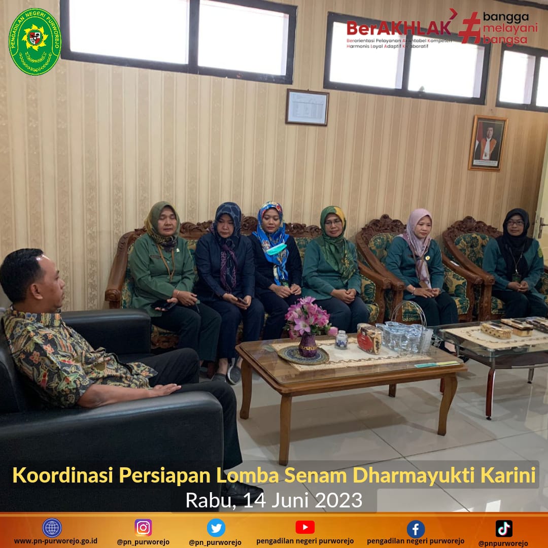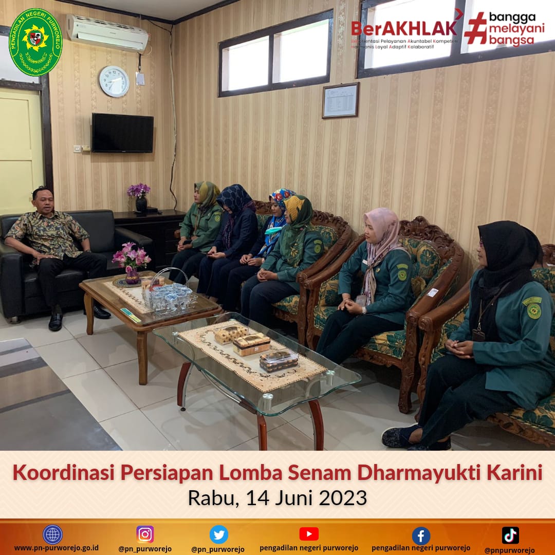 Purworejo, 14 Juni 2023. Ketua Pengadilan Negeri Purworejo Bapak Purnomo Hadiyarto, S.H. memberikan arahan terkait persiapan lomba senam Dharmayukti Karini cabang Purworejo.