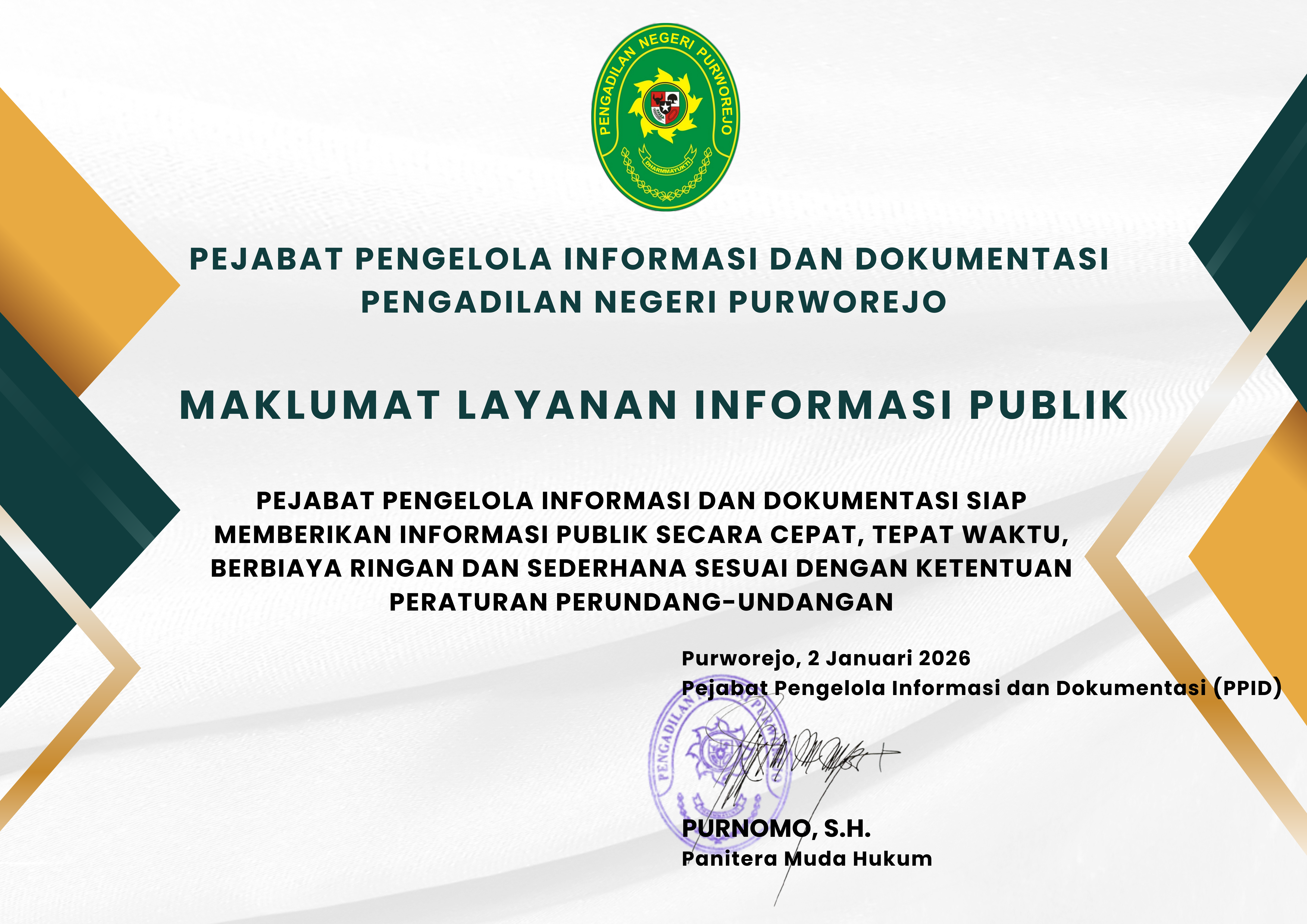 Ketua Pengadilan Negeri Purworejo telah menetapkan Surat Keputusan meliputi panjar biaya perkara, biaya radius untuk pemanggilan / pemberitahuan serta biaya proses dalam penyelesaian perkara perdata di Pengadilan Negeri Lebih Lanjut
