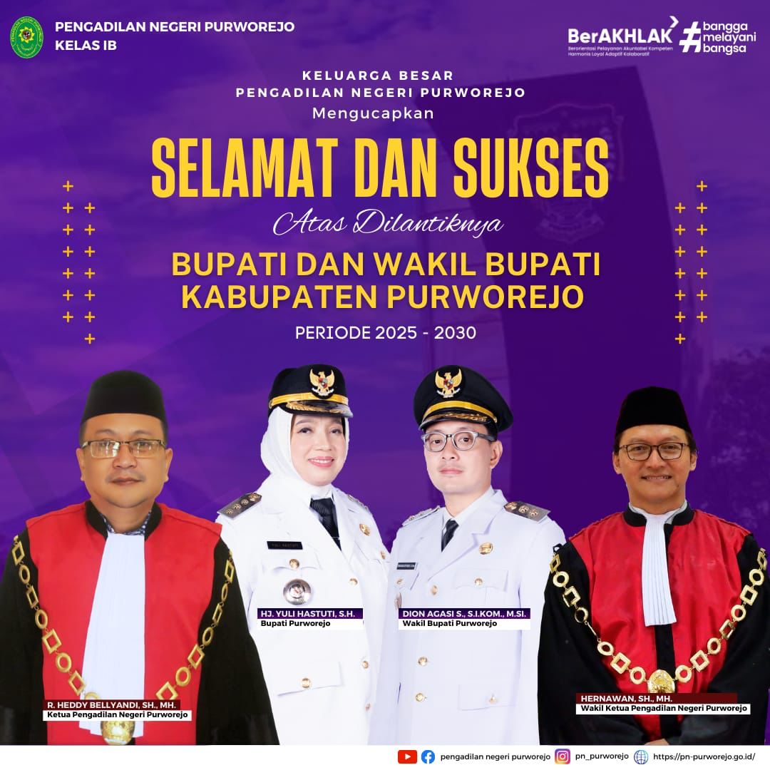 Selamat & Sukses Atas Pelantikan Bupati dan Wakil Bupati Kabupaten Purworejo Periode 2025-2030