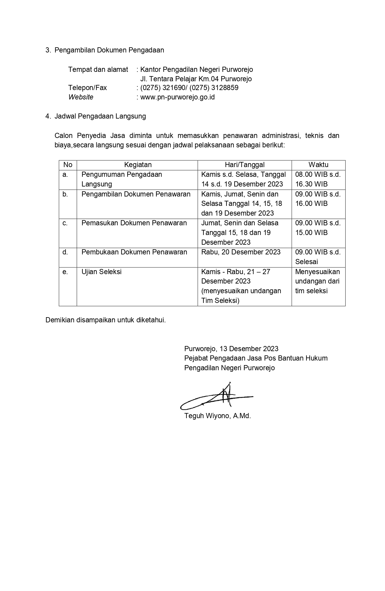 14 Desember 2023 Pengumuman Pengadaan Jasa Konsultansi Pos Bantuan Hukum on Kamis, 14 Desember 2023. Posted in Pengumuman Terkini Download : Pengumuman Pengadaan Jasa Konsultansi Pos Bantuan Hukum Continue Reading